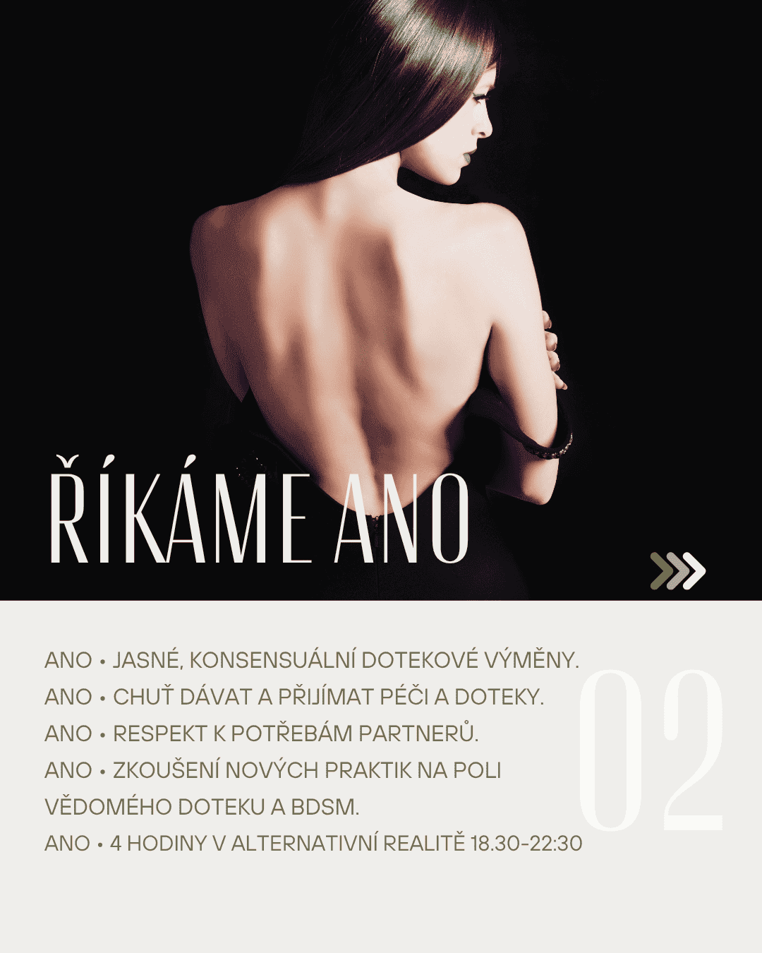 Objevte spojení světa jemnosti, intenzity a vědomého doteku. Tentokrát pro ty co hledají i pro ti co už našli. Vítaní jsou lidé BDSM pozitivní i lidé vanilkoví.